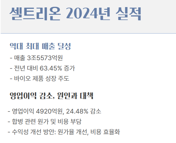 셀트리온 24년 매출, 영업이익