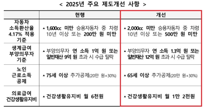 2025년부터 기초생활수급자의 요건이 개선됩니다.